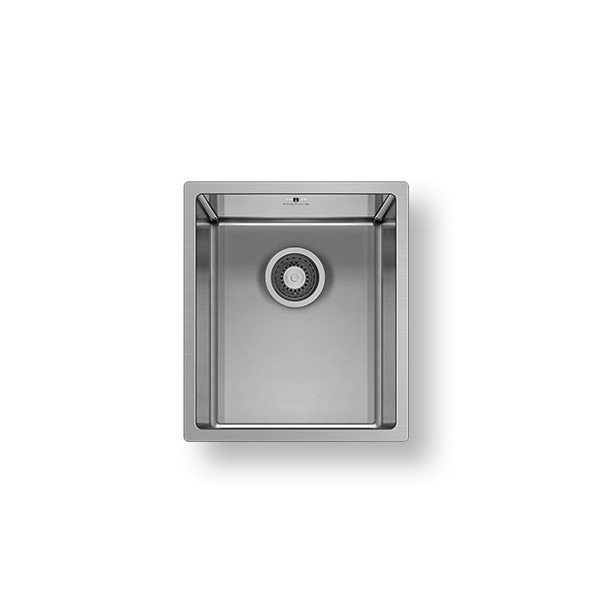 Ανοξείδωτος νεροχύτης Pyramis διαστάσεων 34x40cm της σειράς Astris, σε βουρτσισμένο φινίρισμα από άριστης ποιότητας ατσάλι (CrNi 18/10), τύπου AISI 304, με μία γούρνα και ισόπεδη εγκατάσταση.