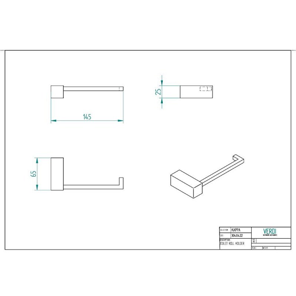 Χαρτοθήκη Kappa σε χρώμιο, διαστάσεων: