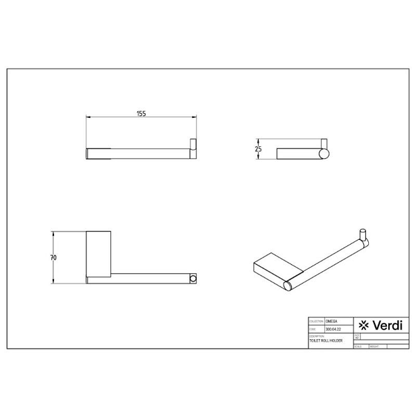 Χαρτοθήκη Omega σε χρώμιο, διαστάσεων: