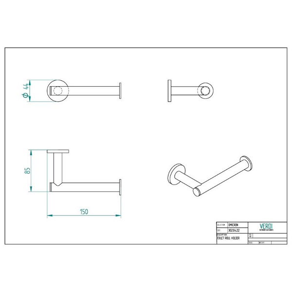 Χαρτοθήκη Omicron σε χρώμιο, διαστάσεων: