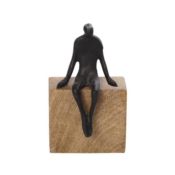 Διακοσμητικό αγαλματίδιο μαύρο από μέταλλο σε ξύλινη βάση.
