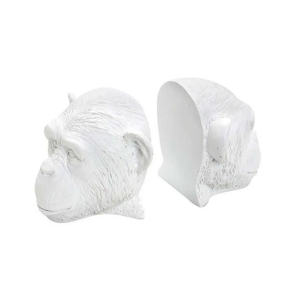 Διακοσμητικοί κεραμικοί βιβλιοστάτες Πίθηκος σε λευκό χρώμα σε σετ των 2 τεμαχίων.