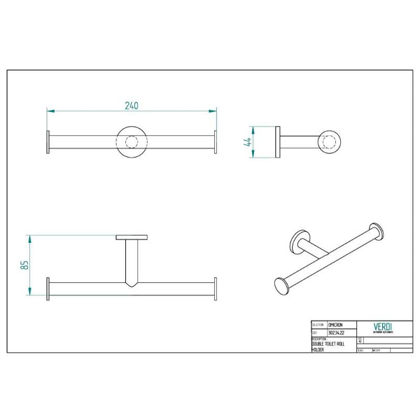 Διπλή Χαρτοθήκη Omicron σε χρώμιο, διαστάσεων:
