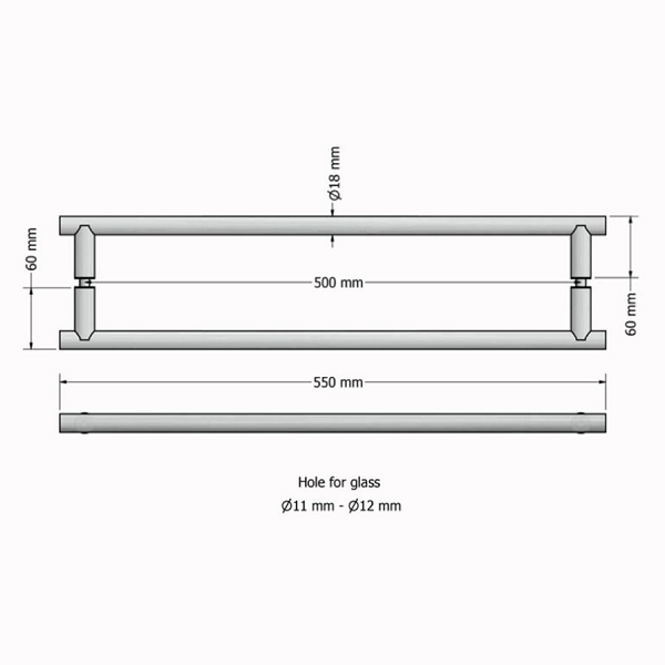 Διπλή λαβή/πετσετοθήκη για τζάμι σε χρώμιο, διαστάσεων:
