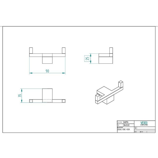 Διπλό Άγκιστρο Kappa σε χρώμιο, διαστάσεων: