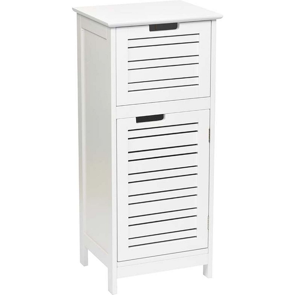 Έπιπλο mdf με 1 συρτάρι και 1 ντουλάπι με εσωτερικό ράφι, σε χρώμα λευκό.
