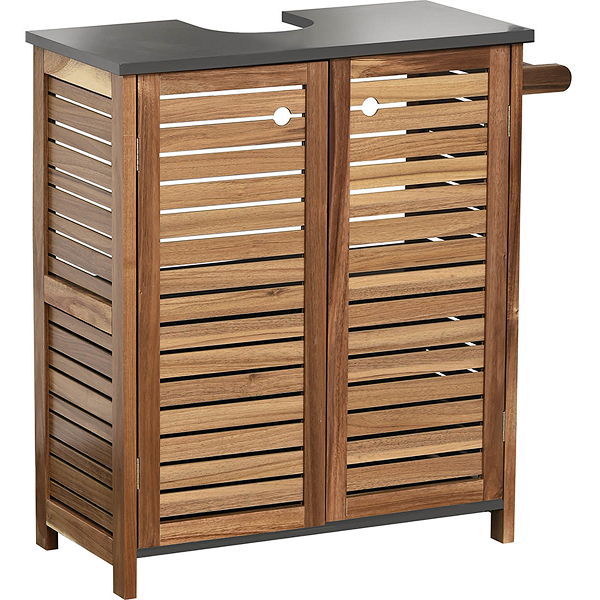 Έπιπλο mdf/ακακία με 2 ντουλάπια, ράφι στο εσωτερικό και 1 κρεμάστρα για πετσέτα στο πλάι, σε χρώμα γκρι-καφέ.