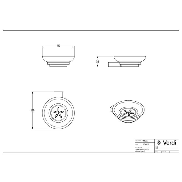 Επιτοίχια Σαπουνοθήκη Omega σε χρώμιο, διαστάσεων: