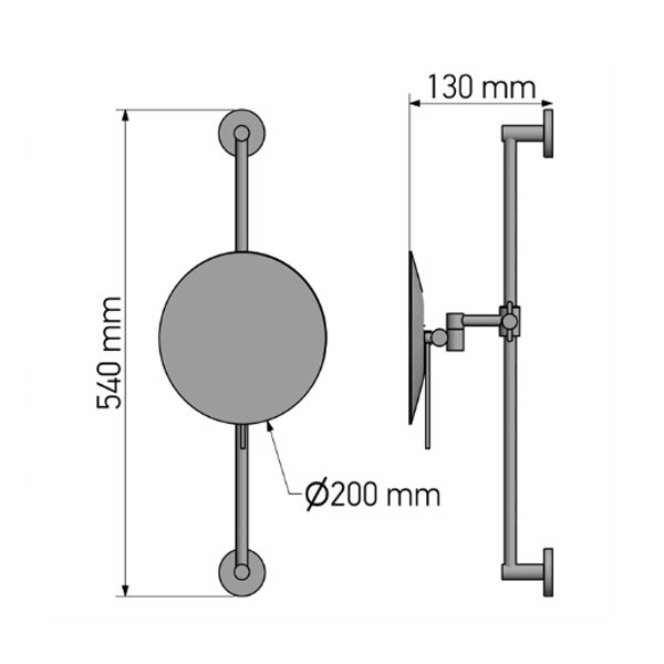 Επιτοίχιος μεγενθυτικός καθρέπτης x3 ρυθμιζόμενου ύψους σε διάφορα φινιρίσματα, διαστάσεων: