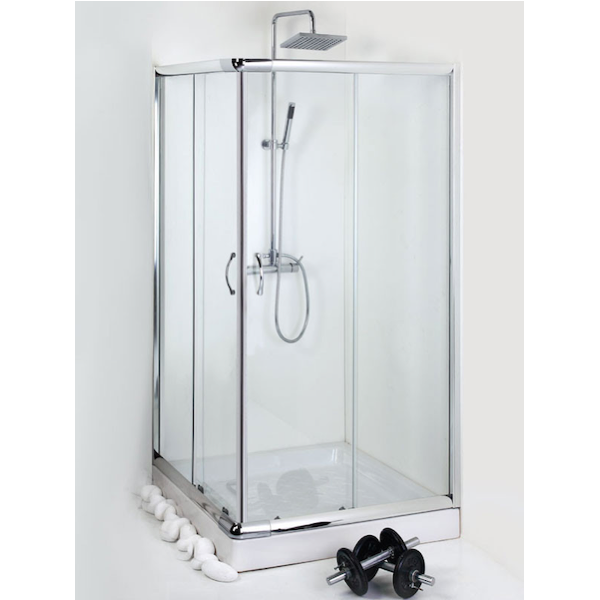 Καμπίνα ντουζιέρας τετράγωνη συρόμενη της σειράς 4000 SC 100/SC 102, ύψους 185cm, σε διάφορες διαστάσεις με διπλά μπρούτζινα ροδάκια, μαγνητικό κλείσιμο και λαβές χρωμέ.