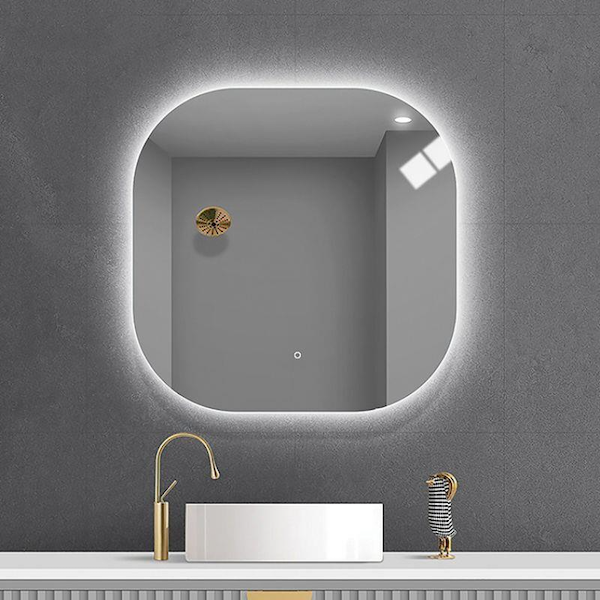 Επιτοίχιος καθρέπτης LED Julia της εταιρείας Gloria, με μπουτόν αφής.