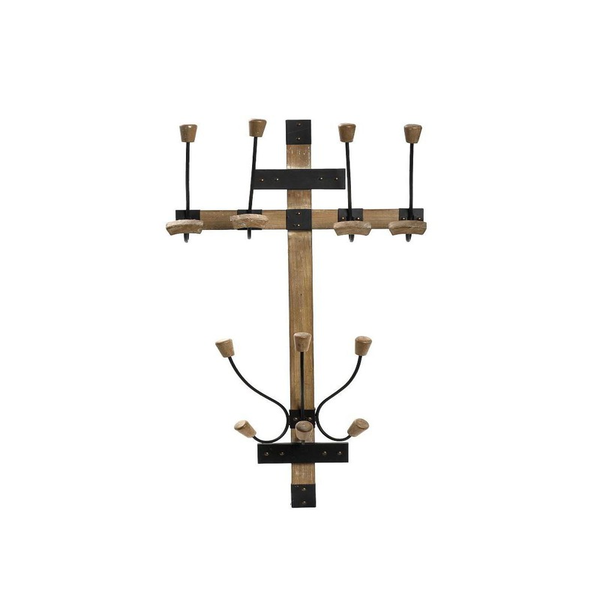 Κρεμάστρα τοίχου από ξύλο πεύκου 14 θέσεων με μεταλλικά στοιχεία σε χρώμα καφέ-μαύρο.
