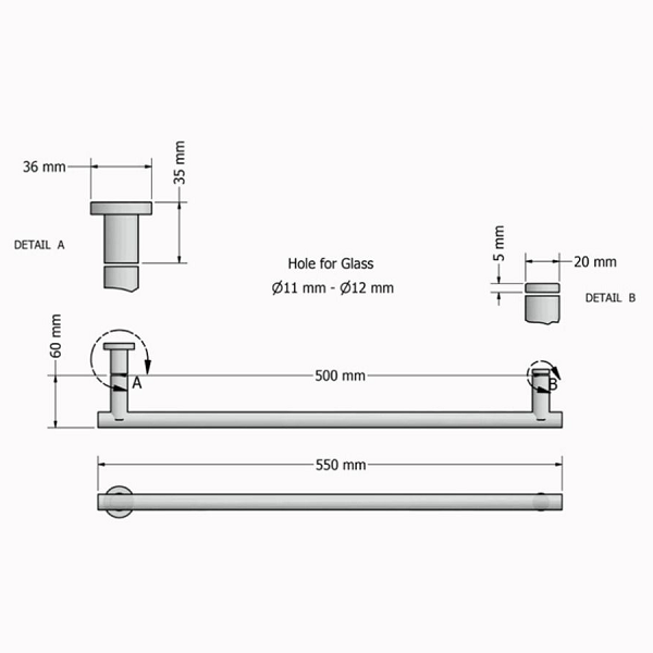 Λαβή/πετσετοθήκη για τζάμι σε διάφορα φινιρίσματα, διαστάσεων: