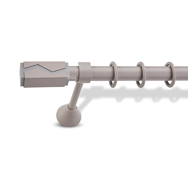 Μεταλλική κουρτινόβεργα Enis Άδωνις σε μονή βέργα, διπλή βέργα ή διπλή με σιδηρόδρομο σε διάφορες διαστάσεις. Η διάμετρος της βέργας είναι Ø25mm και περιλαμβάνει έως 3 στηρίγματα ανάλογα με την διάσταση.