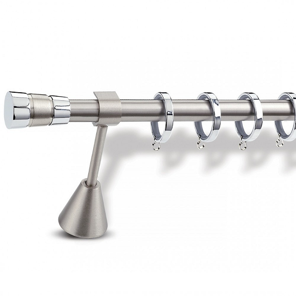 Μεταλλική κουρτινόβεργα Enis Αμοργός σε μονή βέργα διαφόρων διαστάσεων. Η διάμετρος της βέργας είναι Ø20mm και περιλαμβάνει έως 3 στηρίγματα ανάλογα με την διάσταση.
