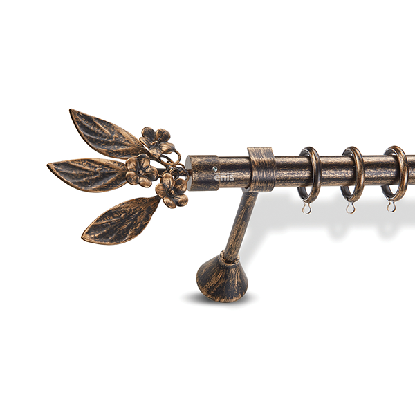 Μεταλλική κουρτινόβεργα Enis Αφροδίτη σε μονή βέργα, διπλή βέργα ή διπλή με σιδηρόδρομο σε διάφορες διαστάσεις. Η διάμετρος της βέργας είναι Ø25mm και περιλαμβάνει έως 3 στηρίγματα ανάλογα με την διάσταση.