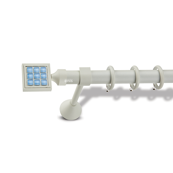 Μεταλλική κουρτινόβεργα Enis Απόλλων 2 σε μονή βέργα, διπλή βέργα ή διπλή με σιδηρόδρομο σε διάφορες διαστάσεις. Η διάμετρος της βέργας είναι Ø25mm και περιλαμβάνει έως 3 στηρίγματα ανάλογα με την διάσταση.