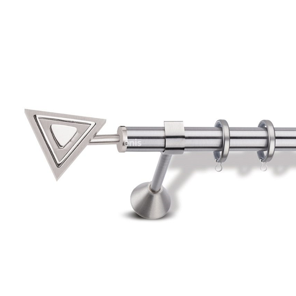 Μεταλλική ανοξείδωτη κουρτινόβεργα Enis Ματ Νίκελ, Άστρο σε μονή βέργα σε διάφορες διαστάσεις. Η διάμετρος της βέργας είναι Ø25mm και περιλαμβάνει έως 3 στηρίγματα ανάλογα με την διάσταση.