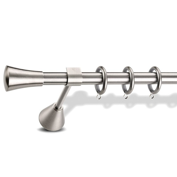 Μεταλλική κουρτινόβεργα Enis Δέλτα σε μονή βέργα διαφόρων διαστάσεων. Η διάμετρος της βέργας είναι Ø20mm και περιλαμβάνει έως 3 στηρίγματα ανάλογα με την διάσταση.