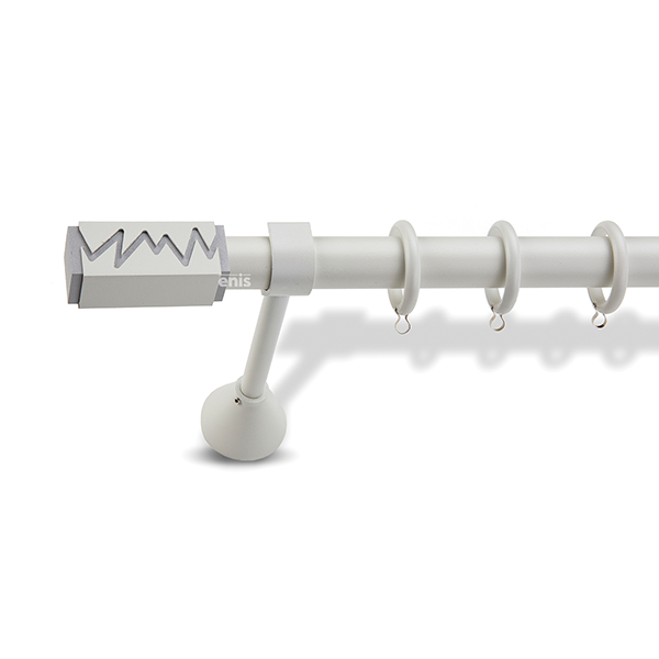 Μεταλλική κουρτινόβεργα Enis Έκτορας σε μονή βέργα, διπλή βέργα ή διπλή με σιδηρόδρομο σε διάφορες διαστάσεις. Η διάμετρος της βέργας είναι Ø25mm και περιλαμβάνει έως 3 στηρίγματα ανάλογα με την διάσταση.