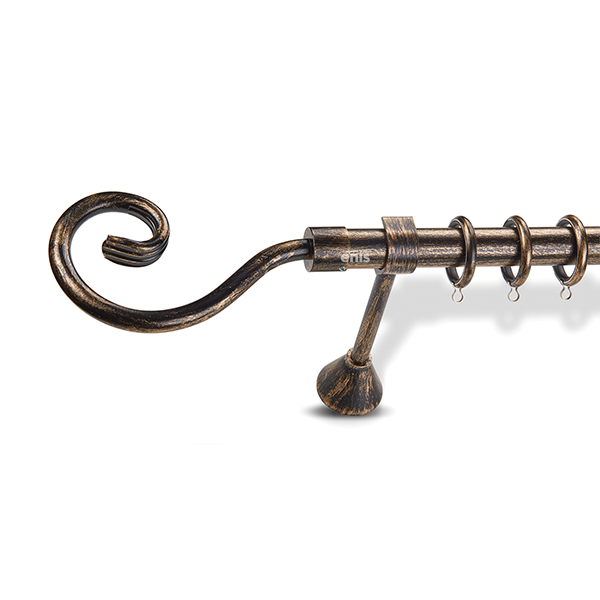 Μεταλλική κουρτινόβεργα Enis Γκλίτσα σε μονή βέργα, διπλή βέργα ή διπλή με σιδηρόδρομο σε διάφορες διαστάσεις. Η διάμετρος της βέργας είναι Ø25mm και περιλαμβάνει έως 3 στηρίγματα ανάλογα με την διάσταση.