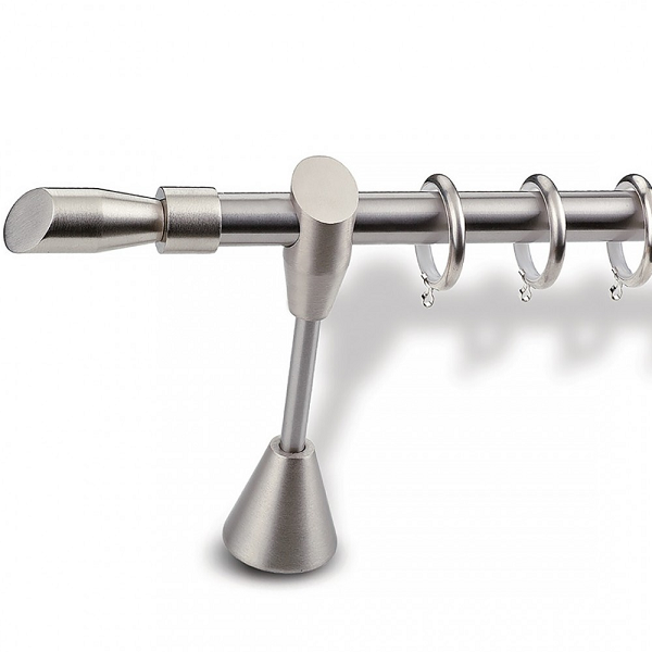 Μεταλλική κουρτινόβεργα Enis Ερμής σε μονή βέργα διαφόρων διαστάσεων. Η διάμετρος της βέργας είναι Ø20mm και περιλαμβάνει έως 3 στηρίγματα ανάλογα με την διάσταση.