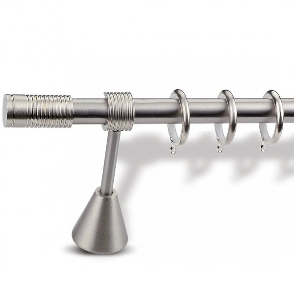 Μεταλλική κουρτινόβεργα Enis Ύδρα σε μονή βέργα διαφόρων διαστάσεων. Η διάμετρος της βέργας είναι Ø20mm και περιλαμβάνει έως 3 στηρίγματα ανάλογα με την διάσταση.