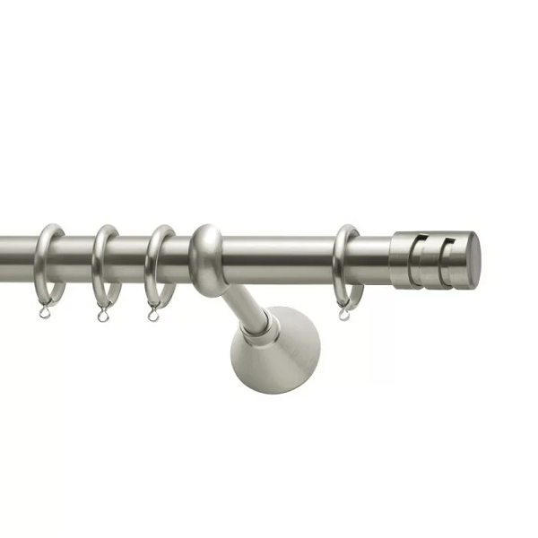 Μεταλλική ανοξείδωτη κουρτινόβεργα Viometale India σε μονή βέργα, διπλή βέργα ή διπλή με σιδηρόδρομο σε διάφορες διαστάσεις. Η διάμετρος της βέργας είναι Ø25mm και περιλαμβάνει έως 3 στηρίγματα ανάλογα με την διάσταση.