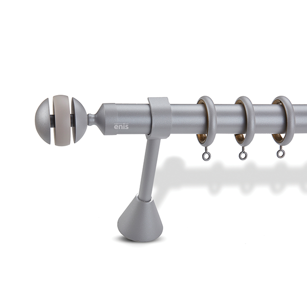 Μεταλλική ανοξείδωτη κουρτινόβεργα Enis Ίρις σε μονή βέργα διαφόρων διαστάσεων. Η διάμετρος της βέργας είναι Ø35mm και περιλαμβάνει έως 3 στηρίγματα ανάλογα με την διάσταση.