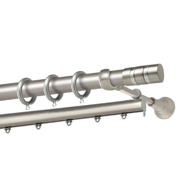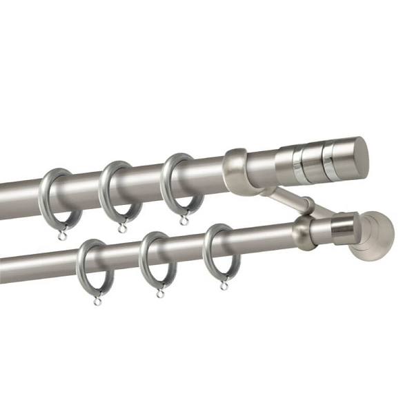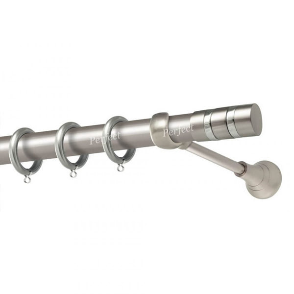 Μεταλλική κουρτινόβεργα Κεφαλονιά της εταιρείας Perfect, χρώματος Ματ Νίκελ/Χρώμιο, σε μονή βέργα, διπλή βέργα ή διπλή με σιδηρόδρομο σε διάφορες διαστάσεις. Η διάμετρος της βέργας είναι Ø25mm και περιλαμβάνει έως 3 στηρίγματα ανάλογα με την διάσταση.