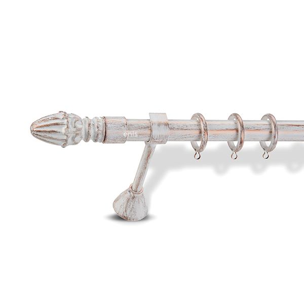 Μεταλλική κουρτινόβεργα Enis Κυπαρίσσι σε μονή βέργα, διπλή βέργα ή διπλή με σιδηρόδρομο σε διάφορες διαστάσεις. Η διάμετρος της βέργας είναι Ø25mm και περιλαμβάνει έως 3 στηρίγματα ανάλογα με την διάσταση.