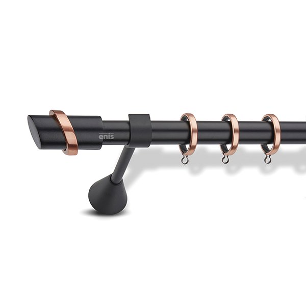 Μεταλλική κουρτινόβεργα Enis Κύθηρα σε μονή βέργα, διπλή βέργα ή διπλή με σιδηρόδρομο σε διάφορες διαστάσεις. Η διάμετρος της βέργας είναι Ø25mm και περιλαμβάνει έως 3 στηρίγματα ανάλογα με την διάσταση.