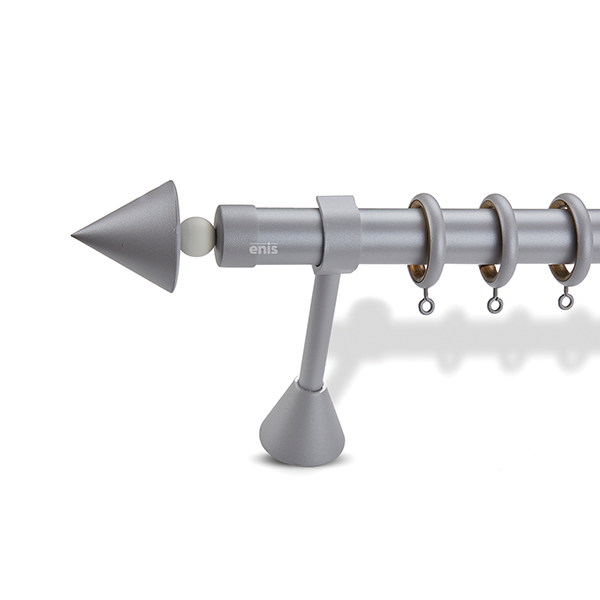 Μεταλλική ανοξείδωτη κουρτινόβεργα Enis Κώνος Μπίλια σε μονή βέργα διαφόρων διαστάσεων. Η διάμετρος της βέργας είναι Ø35mm και περιλαμβάνει έως 3 στηρίγματα ανάλογα με την διάσταση.