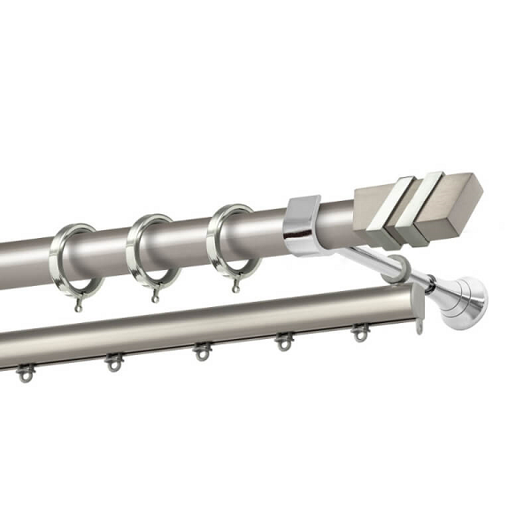 Μεταλλική κουρτινόβεργα Κρήτη της εταιρείας Perfect, χρώματος Ματ Νίκελ/Χρώμιο ή Μαύρο/Χαλκός, σε μονή βέργα, διπλή βέργα ή διπλή με σιδηρόδρομο σε διάφορες διαστάσεις. Η διάμετρος της βέργας είναι Ø25mm και περιλαμβάνει έως 3 στηρίγματα ανάλογα με την διάσταση.