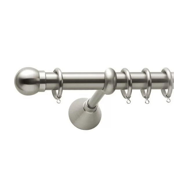Μεταλλική ανοξείδωτη κουρτινόβεργα Viometale Lucifer σε μονή βέργα, διπλή βέργα ή διπλή με σιδηρόδρομο σε διάφορες διαστάσεις. Η διάμετρος της βέργας είναι Ø25mm και περιλαμβάνει έως 3 στηρίγματα ανάλογα με την διάσταση.