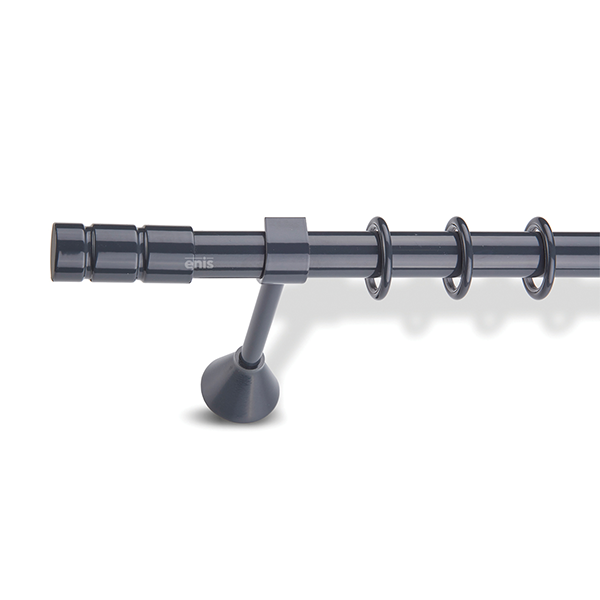 Μεταλλική κουρτινόβεργα Enis Λυδία σε μονή βέργα, διπλή βέργα ή διπλή με σιδηρόδρομο σε διάφορες διαστάσεις. Η διάμετρος της βέργας είναι Ø25mm και περιλαμβάνει έως 3 στηρίγματα ανάλογα με την διάσταση.