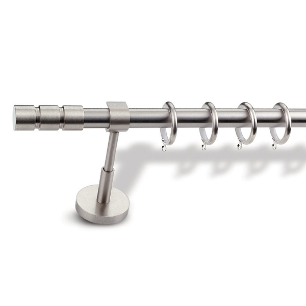 Μεταλλική κουρτινόβεργα Enis Λυδία σε μονή βέργα διαφόρων διαστάσεων. Η διάμετρος της βέργας είναι Ø20mm και περιλαμβάνει έως 3 στηρίγματα ανάλογα με την διάσταση.