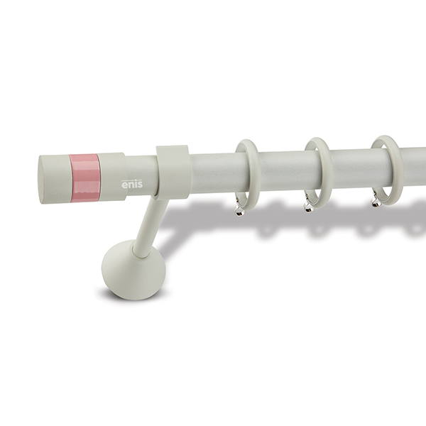 Μεταλλική κουρτινόβεργα Enis Μόνικα σε μονή βέργα, διπλή βέργα ή διπλή με σιδηρόδρομο σε διάφορες διαστάσεις. Η διάμετρος της βέργας είναι Ø25mm και περιλαμβάνει έως 3 στηρίγματα ανάλογα με την διάσταση.