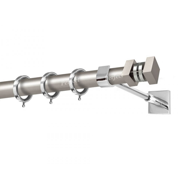Μεταλλική κουρτινόβεργα Νάξος της εταιρείας Perfect, χρώματος Ματ Νίκελ/Χρώμιο, σε μονή βέργα, διπλή βέργα ή διπλή με σιδηρόδρομο σε διάφορες διαστάσεις. Η διάμετρος της βέργας είναι Ø25mm και περιλαμβάνει έως 3 στηρίγματα ανάλογα με την διάσταση.
