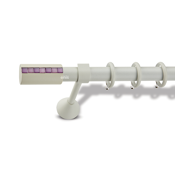 Μεταλλική κουρτινόβεργα Enis Οριζόντιο 2 σε μονή βέργα, διπλή βέργα ή διπλή με σιδηρόδρομο σε διάφορες διαστάσεις. Η διάμετρος της βέργας είναι Ø25mm και περιλαμβάνει έως 3 στηρίγματα ανάλογα με την διάσταση.