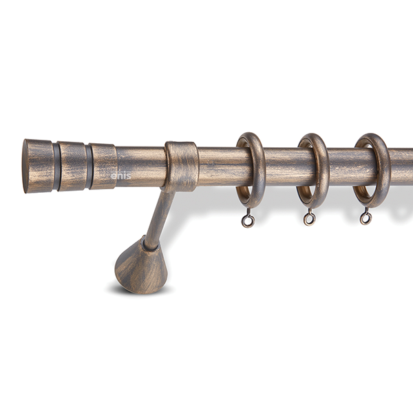 Μεταλλική κουρτινόβεργα Enis Πάρος σε μονή βέργα διαφόρων διαστάσεων. Η διάμετρος της βέργας είναι Ø30mm και περιλαμβάνει έως 3 στηρίγματα ανάλογα με την διάσταση.