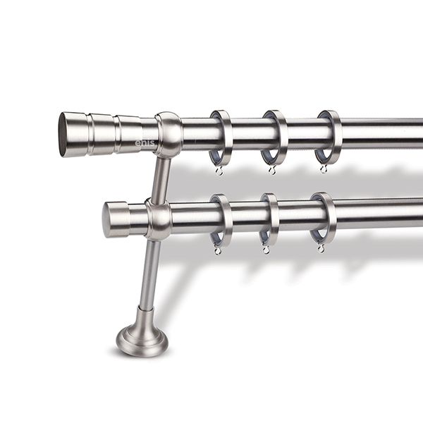 Μεταλλική κουρτινόβεργα Enis Πάρος σε διπλή βέργα διαφόρων διαστάσεων. Η διάμετρος της βέργας είναι Ø35mm και περιλαμβάνει έως 3 στηρίγματα ανάλογα με την διάσταση.