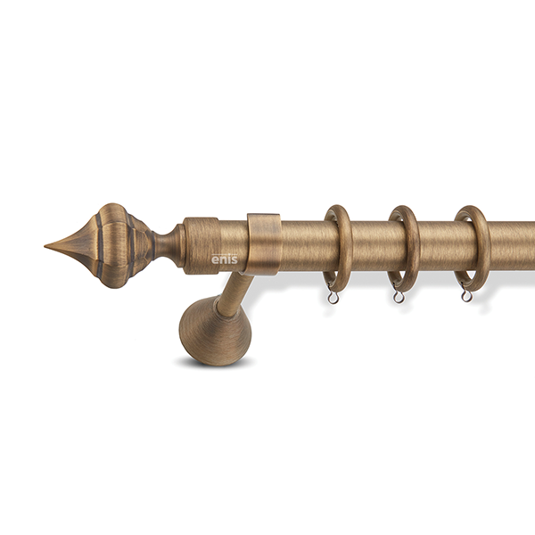 Μεταλλική ανοξείδωτη κουρτινόβεργα Enis Πούντα σε μονή βέργα διαφόρων διαστάσεων. Η διάμετρος της βέργας είναι Ø35mm και περιλαμβάνει έως 3 στηρίγματα ανάλογα με την διάσταση.
