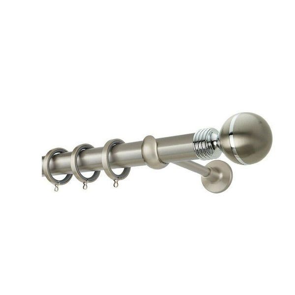 Μεταλλική κουρτινόβεργα Zogometal της σειράς Prestige Collection σε μονή βέργα, διπλή βέργα ή διπλή με σιδηρόδρομο σε διάφορες διαστάσεις. Η διάμετρος της βέργας είναι Ø35mm και περιλαμβάνει έως 3 στηρίγματα ανάλογα με την διάσταση.