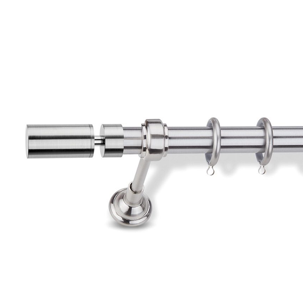 Μεταλλική ανοξείδωτη κουρτινόβεργα Enis Ματ Νίκελ, Prime της σειράς Eco σε μονή βέργα, διπλή βέργα ή διπλή με σιδηρόδρομο σε διάφορες διαστάσεις. Η διάμετρος της βέργας είναι Ø25mm και περιλαμβάνει έως 3 στηρίγματα ανάλογα με την διάσταση.