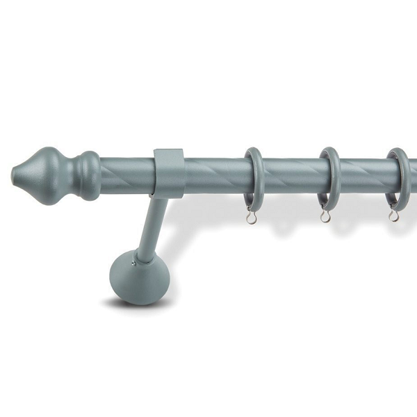 Μεταλλική κουρτινόβεργα στριφτή Enis Μπαρόκο σε μονή βέργα, διπλή βέργα ή διπλή με σιδηρόδρομο σε διάφορες διαστάσεις. Η διάμετρος της βέργας είναι Ø25mm και περιλαμβάνει έως 3 στηρίγματα ανάλογα με την διάσταση.