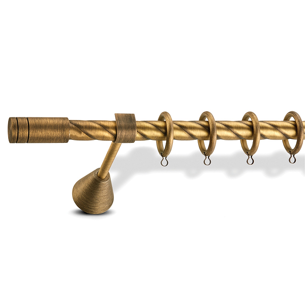 Μεταλλική κουρτινόβεργα στριφτή Enis Τάπα Ρίγα σε μονή βέργα διαφόρων διαστάσεων. Η διάμετρος της βέργας είναι Ø20mm και περιλαμβάνει έως 3 στηρίγματα ανάλογα με την διάσταση.