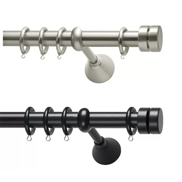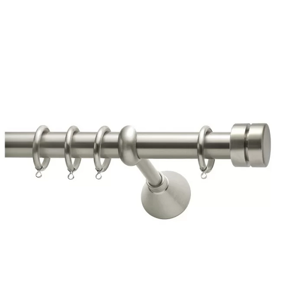 Μεταλλική ανοξείδωτη κουρτινόβεργα Viometale Tokio σε μονή βέργα, διπλή βέργα ή διπλή με σιδηρόδρομο σε διάφορες διαστάσεις. Η διάμετρος της βέργας είναι Ø25mm και περιλαμβάνει έως 3 στηρίγματα ανάλογα με την διάσταση.