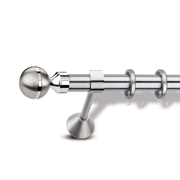 Μεταλλική ανοξείδωτη κουρτινόβεργα Enis Ματ Νίκελ, Βέρα σε μονή βέργα σε διάφορες διαστάσεις. Η διάμετρος της βέργας είναι Ø25mm και περιλαμβάνει έως 3 στηρίγματα ανάλογα με την διάσταση.