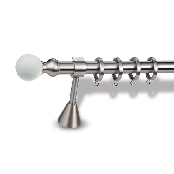 Μεταλλική κουρτινόβεργα Enis Λευκό Μουράνο σε μονή βέργα διαφόρων διαστάσεων. Η διάμετρος της βέργας είναι Ø20mm και περιλαμβάνει έως 3 στηρίγματα ανάλογα με την διάσταση.